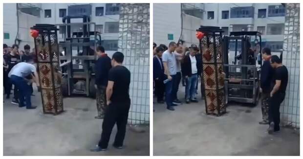 Демонтаж архитектурного элемента вертикальной формы с неожиданным финалом.