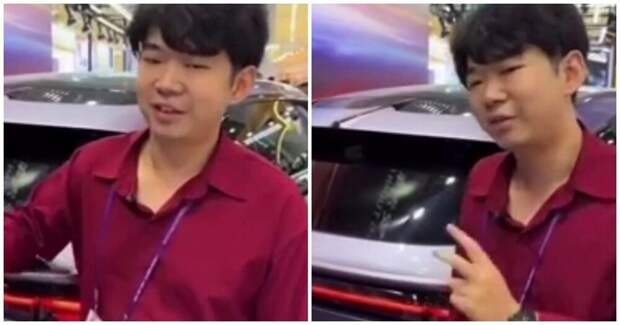 На российском рынке наблюдается бум китайского автопрома. Пользователь сети запечатлел продавца из Поднебесной, который на "великом и могучем" агитирует покупать именно их автомобили.