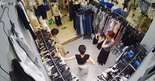 Камера наблюдения, установленная в торговом павильоне в Китае, запечатлела женщин, обсуждающих свои дела. В какой-то момент их разговоры сменились криками и лёгкой паникой.