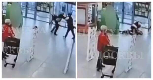 На востоке Москвы 41-летний мужчина по неизвестной причине напал на охранника магазина, избил его и повалил на пол. После драки пострадавшего пришлось госпитализировать. В сети появились кадры потасовки.