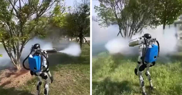 В Китае начали применять гуманоидных роботов для распыления ядовитого газа. К счастью, роботы распыляют газ только против насекомых-вредителей. Скайнет не за горами.