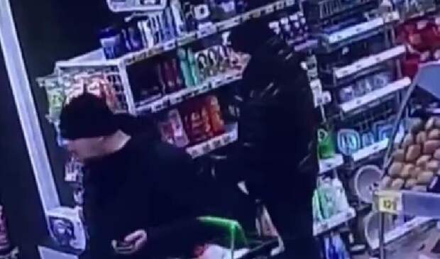 Мужчина зашел в магазин «Пятерочка», развернул черный пакет и начал складывать туда товары — судя по видео, это были шампуни или другие средства личной гигиены. Его остановили сотрудницы. Мужчина положил пакет и пошел на выход.