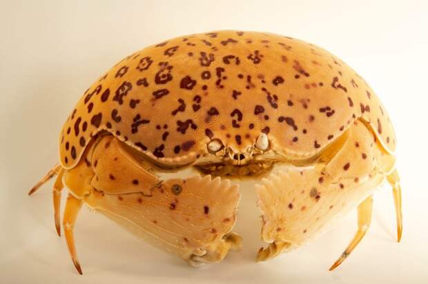 Вы только посмотрите на его доспехи, они превосходны даже по меркам других крабов! Толстый и прочный панцирь с боков загибается книзу и защищает ноги, которые сами по себе бронированы на отлично, кстати. Благодаря такому строению карапакса, краб может принимать превосходную оборонительную позу.