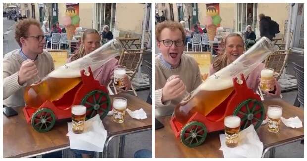 Настоящую пивную пушку обнаружили в Италии — миланский бар сделал эпичную подачу пенного на компанию из нескольких человек.