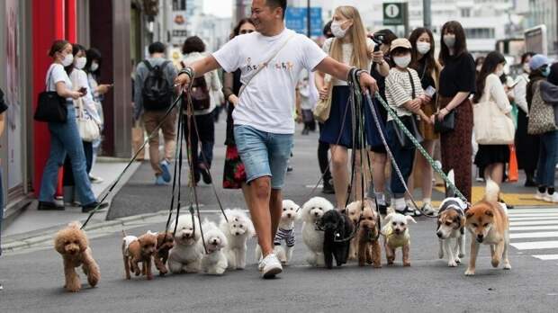 Некоторые японцы из-за большой занятости и нехватки времени на прогулку со своими собаками нанимают людей, которые делают это за них. Профессия выгульщика собак там остаётся востребованной и даже прибыльной.