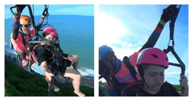 Женщина сделала неприятный сюрприз инструктору во время полёта на параплане.
