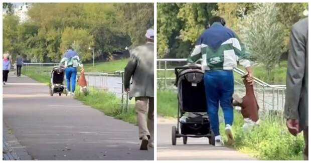 Ничего необычного, просто папа гуляет с ребёнком. Видео снято в Санкт-Петербурге.