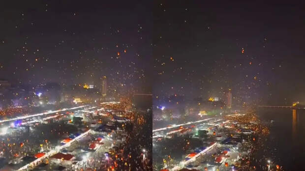 На видео запечатлено по-настоящему красивое и захватывающее зрелище — грандиозный фестиваль небесных фонариков. Тысячи светящихся огоньков медленно поднимаются в ночное небо, создавая волшебную реку света.