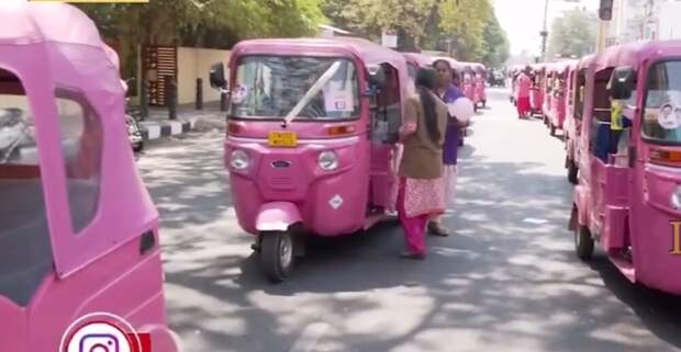100 розовых автомобилей были презентованы в рамках создания нового женского такси в Индии. Машинки предназначены только для водителей и пассажиров женского пола.