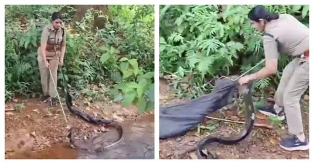 В штате Керала, Индия, сотрудница лесной охраны по имени Рошни поймала королевскую кобру. Процесс ловли самой крупной ядовитой змеи в мире сняли на видео.