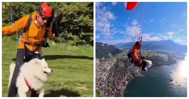 В Европе смелый четвероногий экстремал отправился в полёт на параплане вместе с хозяином. По словам владельца, пёс не только наслаждался видом с высоты, но и научился самостоятельно приземляться.