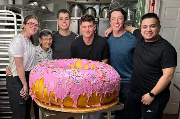 Кулинары Ник ДиДжиованни из США и Линн Дэвис из Японии любят удивлять поклонников своего творчества. Они не раз попадали в Книгу рекордов Гиннеса и не планируют останавливаться. Недавно кулинары испекли гигантский торт, который выглядит как пончик.