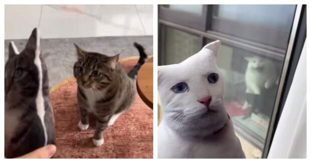 Хозяева котов показали питомцам их плюшевых клонов и запечатлели реакцию.