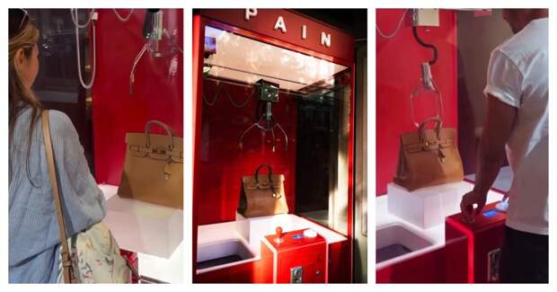 На нью-йоркской неделе моды установили игровой автомат с названием "БОЛЬ" (PAIN). Внутри находится премиум-сумка Birkin, которую невозможно достать.