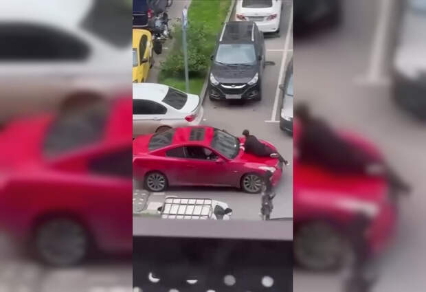 Свидетелями любовных разборок стали соседи. Сначала девушка чуть пихнула парня капотом «Инфинити», а потом отвезла надоедливого до мусорных баков. Теперь жители ЖК гадают, чего натворил мужичок.