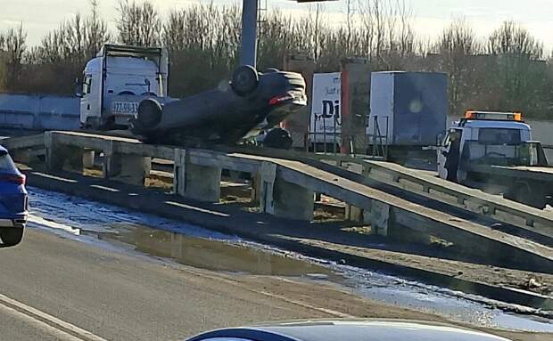 Водитель седана, играя в шашки за рулем, не справился с управлением, вылетел с дороги и перевернулся. Никого не задел, никто не пострадал. Место действия - 53 километр КАД.