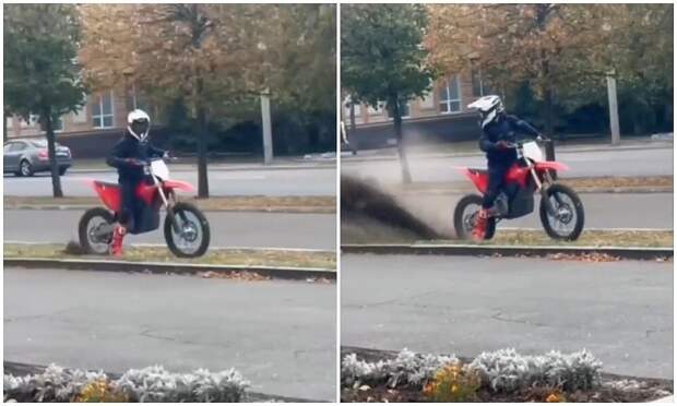 Такая вот бестолочь на электрическом питбайке решила, что будет круто изуродовать газон и загадить тротуар. Макеевка.