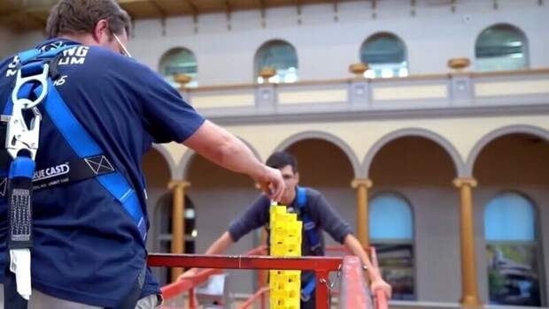 Одиннадцать любителей домино пять дней кропотливо строили башню в музее в США. В результате им удалось побить мировой рекорд.