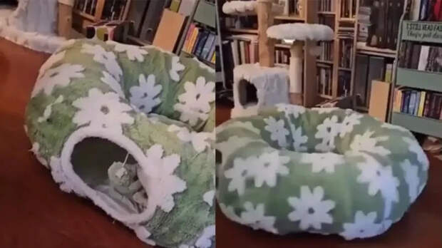 Котейка из этого видео, забравшись в лежанку-бублик, внезапно включил режим сверхскорости и устроил настоящий кошачий забег.