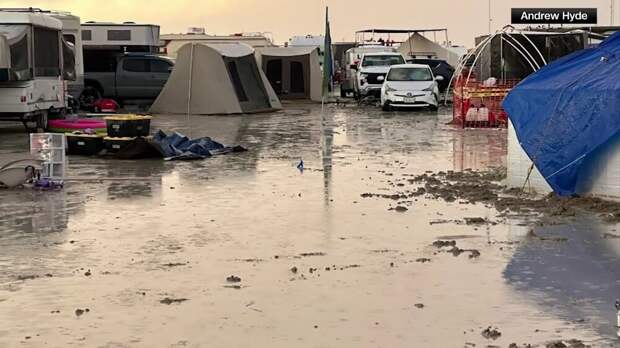 Один из крупнейших в мире фестивалей искусств Burning Man буквально терпит бедствие посреди пустыни в штате Невада. В "одной лодке" оказались десятки тысяч посетителей, застрявшие на масштабном мероприятии из-за сильных ливней, которые размыли дороги. Люди оказались без еды и воды в липкой грязи, туалеты переполнены, спальные мешки вымокли, на помощь никто не спешит.