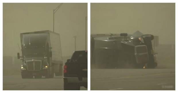 На юг и средний запад США обрушилась серия мощных штормов и торнадо. В Техасе, например, ураганный ветер переворачивал фуры и полуприцепы.