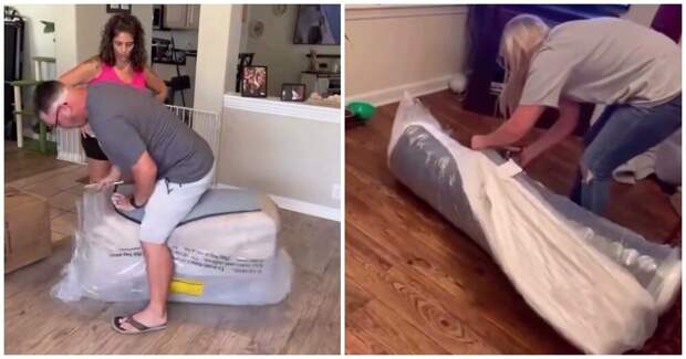 Подборка реакций людей, которые впервые вскрывали запечатанный матрас.