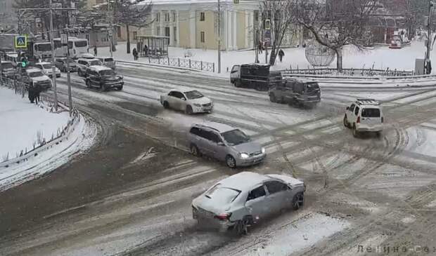 Отсутствие бамперов у нарушителя намекает на его "профессионализм". Южно-Сахалинск.