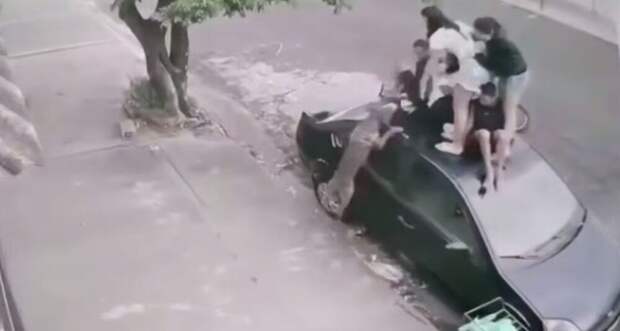 В бразильском городе Жаботикабал питбуль атаковал группу подростков. Агрессивный пёс загнал парней и девушек на крышу автомобиля.