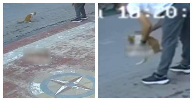 Прохожий помог уличному коту, который чем-то подавился. Момент спасения попал на видео.