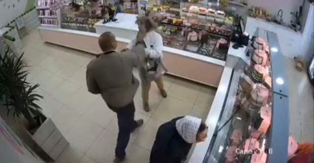 Инцидент произошел в одном из сетевых супермаркетов и попал на записи камер видеонаблюдения. По словам очевидцев, мужчина затеял ссору с одной из женщин и ударил ее по лицу.