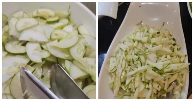 Мужчина демонстрирует выраженную эмоциональную реакцию, вызванную разнообразием техник нарезки огурцов.