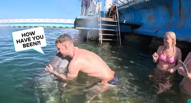 На кадрах заметно, что неизвестный мужчина вместе еще с несколькими посетительницами спустился к одному из бассейнов, где живет млекопитающее. После того, как животное замечает человека, оно подплывает к мужчине и обнимает его.