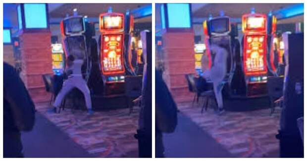 Мужчина прыгал на автомат и разбил его. Посетители казино были в шоке.