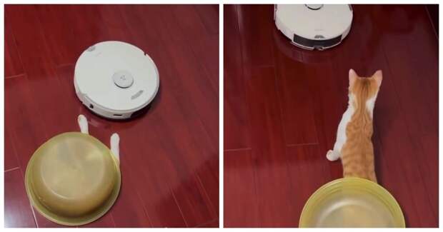 Рыжий кот замаскировался под своего главного врага в доме. Пушистый выждал момент и незаметно нанес удар.