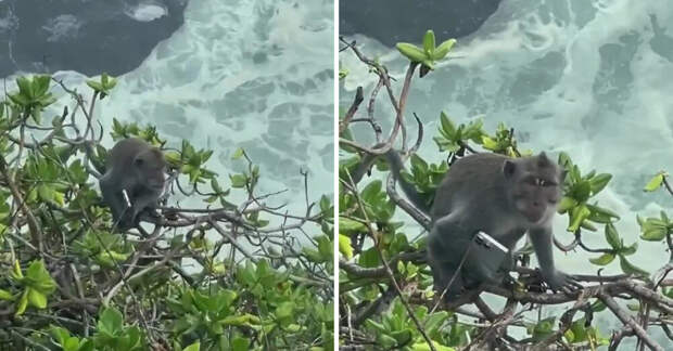 Туристы на Бали заметили обезьяну, которая мирно отдыхала на дереве с последней моделью IPhone.