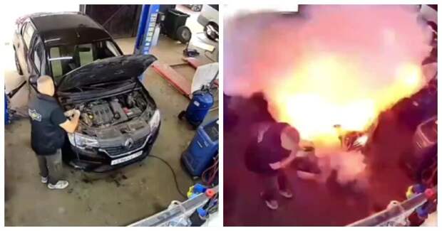 Во время заправки автомобиля фреоном произошёл небольшой взрыв, который мгновенно превратился в пламя. К счастью, никто серьёзно не пострадал, но инцидент показал, насколько опасна работа с такими веществами без строгого соблюдения техники безопасности.