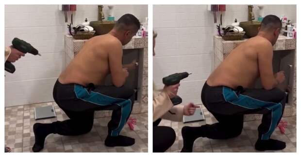 Женщина решила подшутить над своим мужем, занимавшимся домашними делами. Однако мужчина не оценил дурацкую шутку.