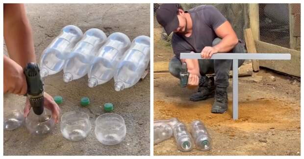 Мужчина показал, как сделать кормушку и поилку для пернатых питомцев из пластиковых бутылок.