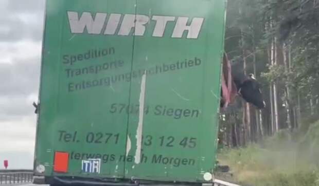 Корова решила сбежать из грузовика недалеко от подмосковных Луховиц. Хочется верить, что её вовремя остановили.