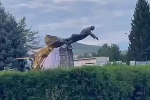 Говорят, монумент сам упал, но судя по видео, его снесли целенаправленно.