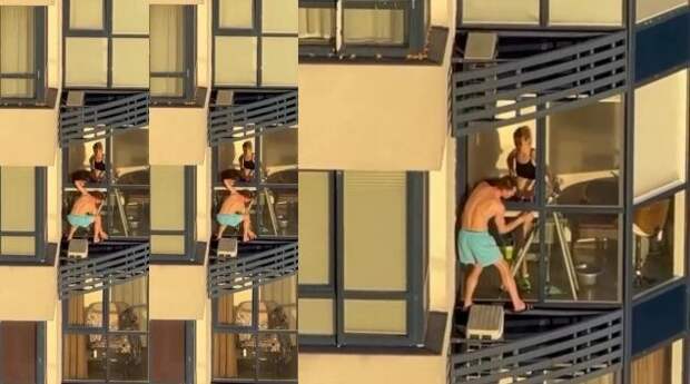 Жена заставила мужа танцевать на канате безумия, балансируя на головокружительной высоте, чтобы вернуть окнам первозданную чистоту.