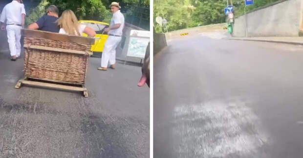 Туристы продемонстрировали, как спускались по извилистой дороге в огромной корзине для белья. Несмотря на первые сомнения, поездка оказалась невероятно веселой и совсем не страшной. Организаторы рекомендуют попробовать это развлечение каждому, кто окажется на острове.