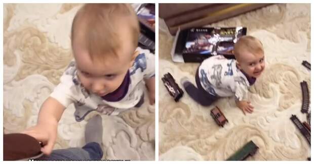 Люди с малых лет пытаются манипулировать другими в своих интересах. Юный герой видео попытался проделать подобное со своим папой. Однако манипуляции эмоциями родителя не удалась