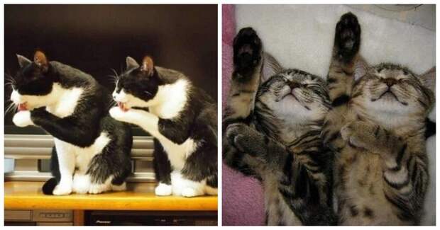 Подборка котиков, которые делают всё или почти всё синхронно. Природа умеет удивлять!