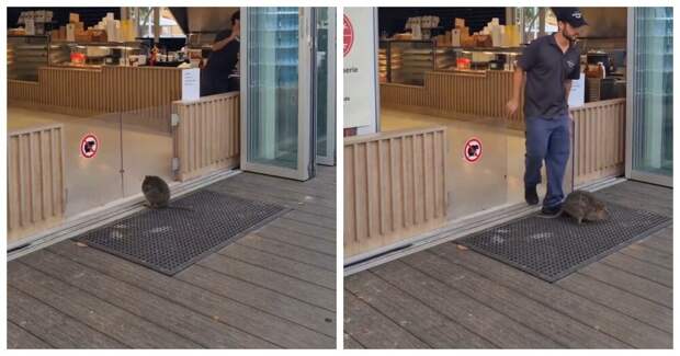 Некоторые заведения Австралии ставят маленькие ворота, чтобы к ним не проникали квокки. Для этого даже вешают специальные знаки, но, видимо, эти зверьки не умеют читать.