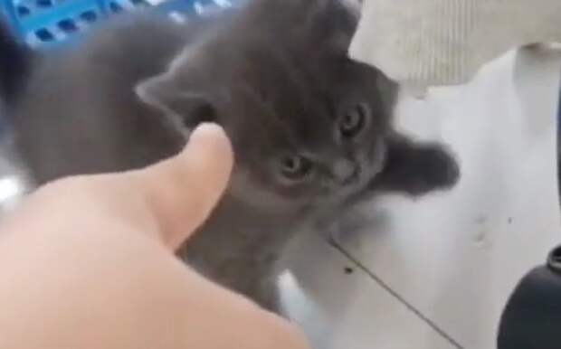 Котёнок не любит, когда на него показывают пальцем. Не по годам грозный питомец увидел палец и решил показать хозяйке, что с ним шутки плохи.