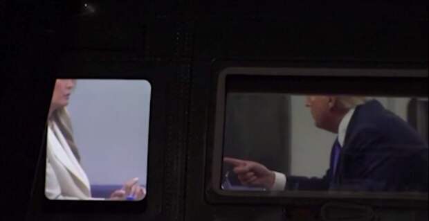 Журналистам удалось заснять напряженный разговор между президентом США и его женой Меланией на борту воздушного судна. Пара о чём-то спорила, при этом Трамп активно жестикулировал и грозил первой леди пальцем.