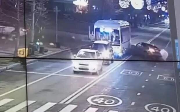 26-летняя барышня на "Мерседесе" красиво вошла в поворот, подбила бордюр и влетела в автобус. Виновница "торжества" и её подруга убежали, машина загорелась. Краснодар.