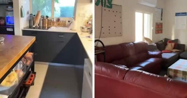 Кот был застигнут врасплох у окна. Пушистый проказник, услышав голос человека, устроил небольшой переполох.
