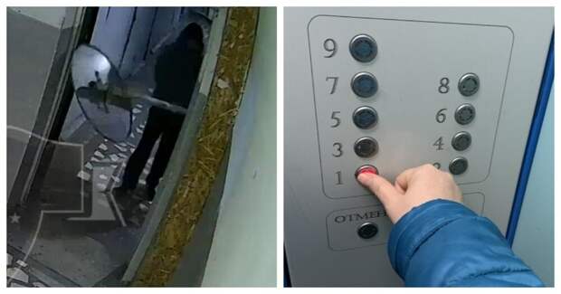 Мужчина принес в подъезд дорожный знак вместе со столбом и попытался занести его в лифт.